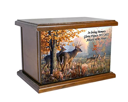 Mahogany Wood Deer Hunting Urn